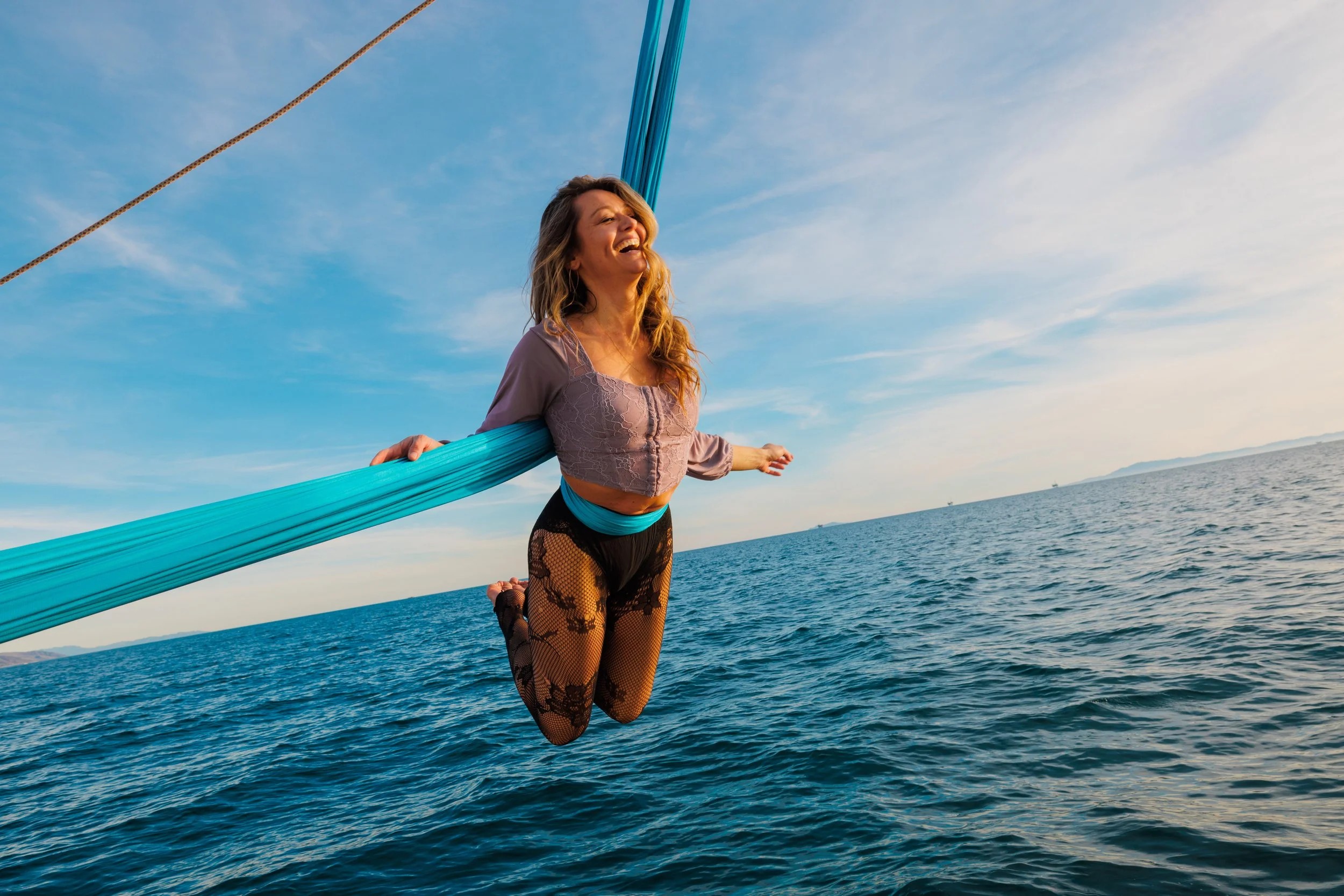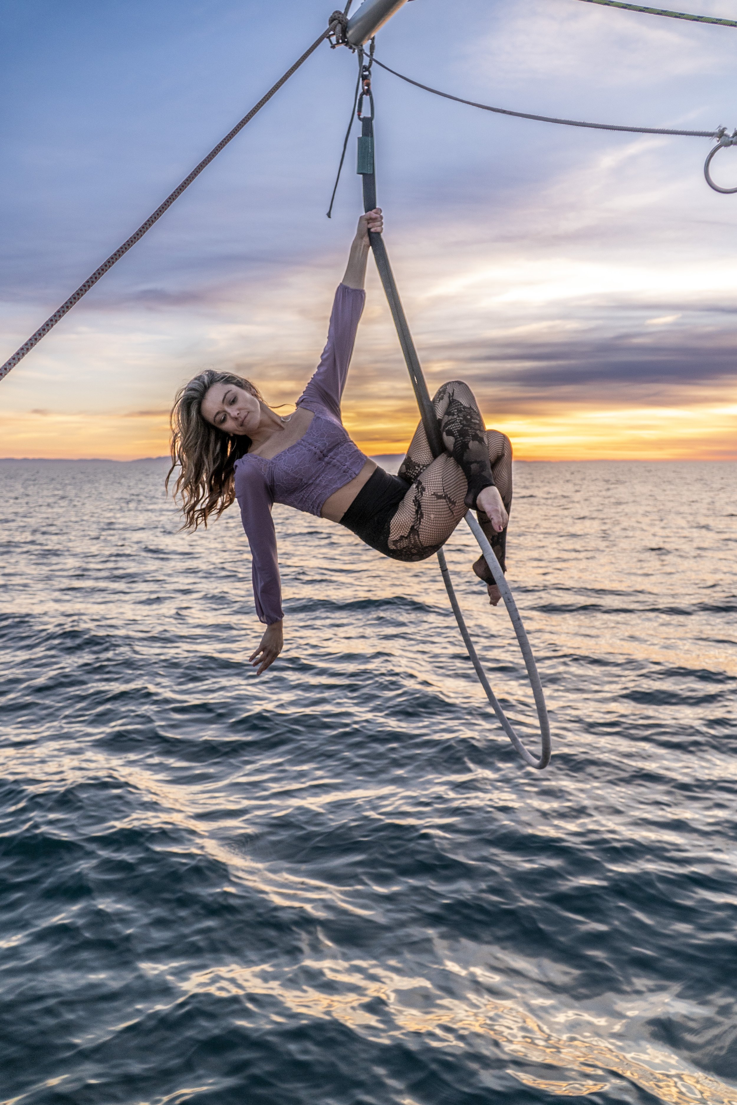 From her earliest years, Cori explored movement through dance, performing with the New Jersey Dance Theatre Ensemble as a teen and training in ballet, tap, jazz, and lyrical from ages 4–18. After college, she lost her connection to dance, but aerial reawakened that spark and allowed her to fully incorporate her best qualities: curiosity, courage, grace, and compassion. From her first candy cane on the silk, she was hooked—enamored not with height or skill alone, but with the art form itself.