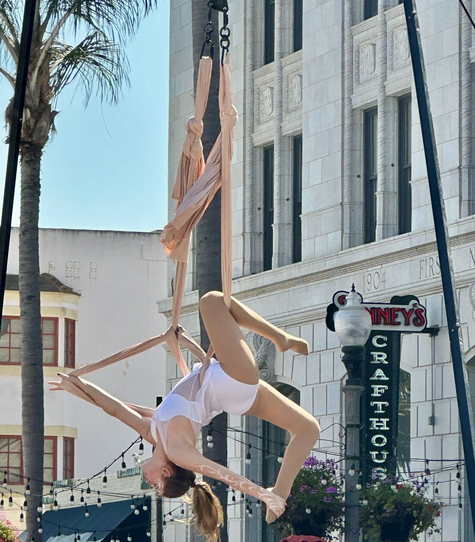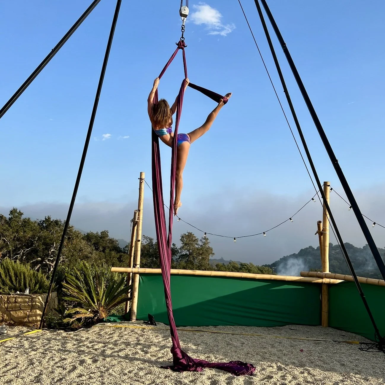 A seventh-generation Santa Barbara native, Autumn spent her childhood flipping, dancing, and mastering movement. By the age of twelve, she had already reached elite Level 10 status in gymnastics. Her passion for performance evolved in her early twenties when she began a dedicated journey into the world of aerial dance.